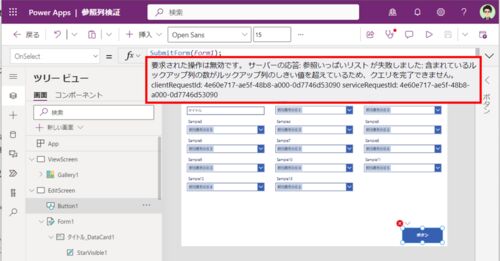 「含まれているルックアップ列の数がルックアップ列のしきい値を超えているため、クエリを完了できません。」 このエラーはSharePointリストの参照列の制約により発生しているエラーです。PowerAppsアプリを作成する際も注意が必要です。